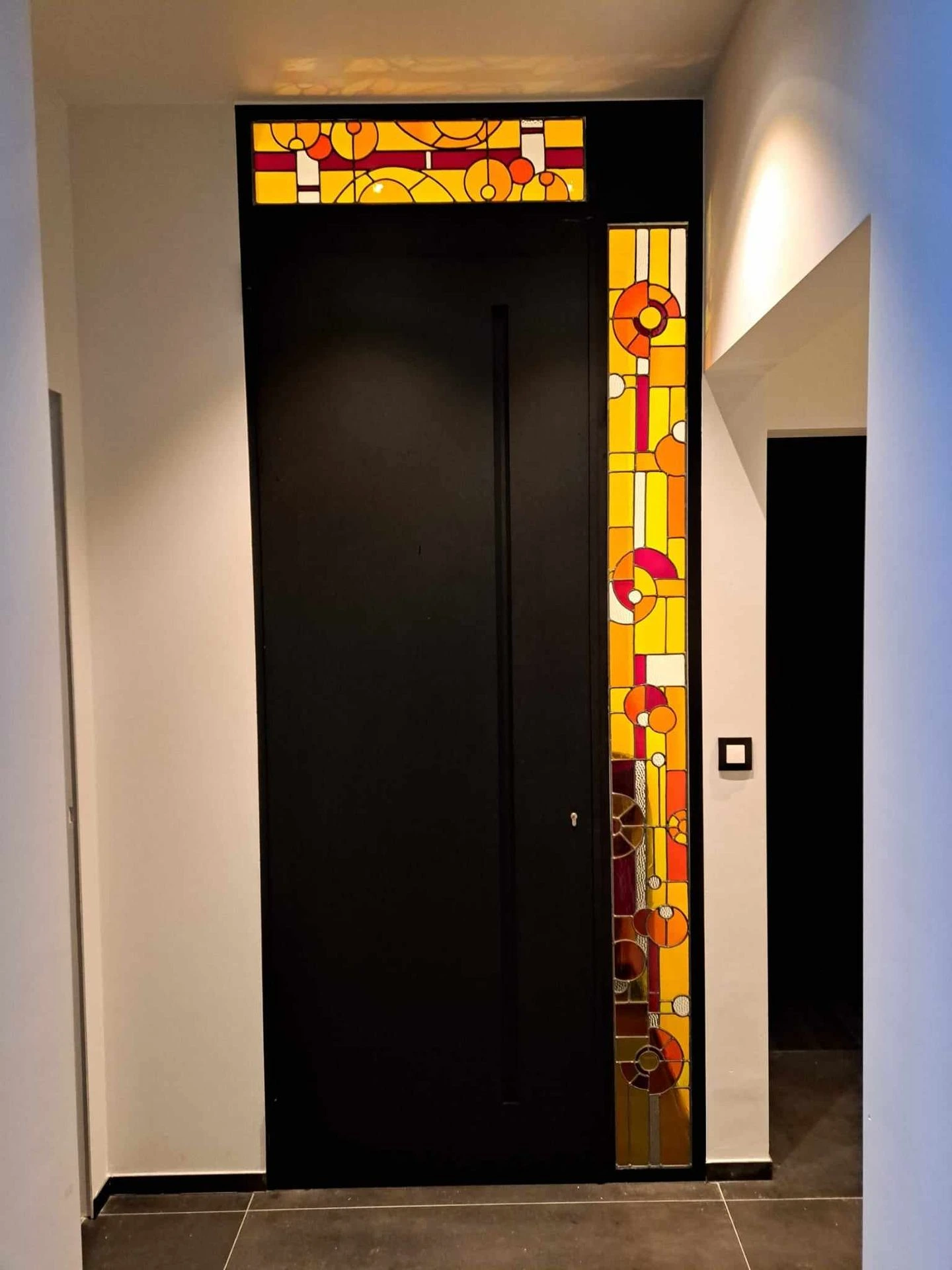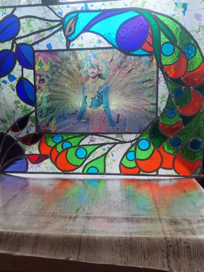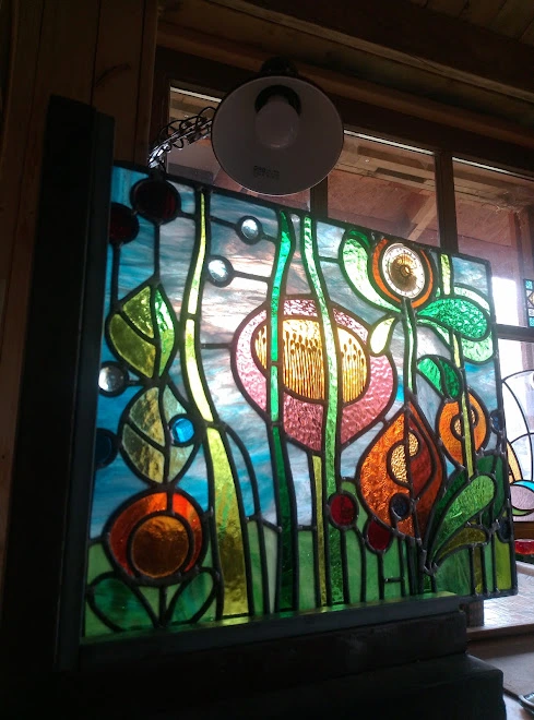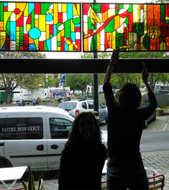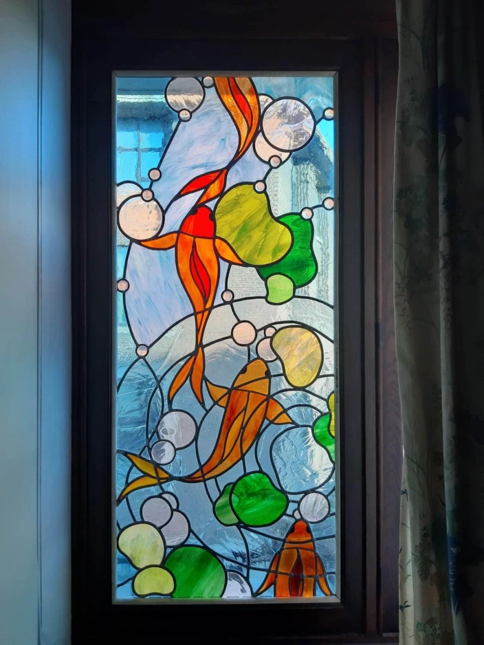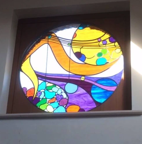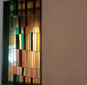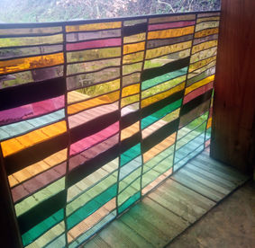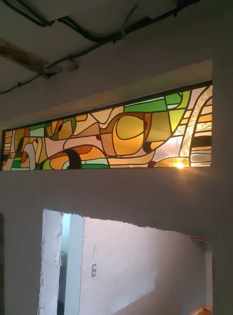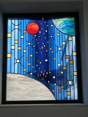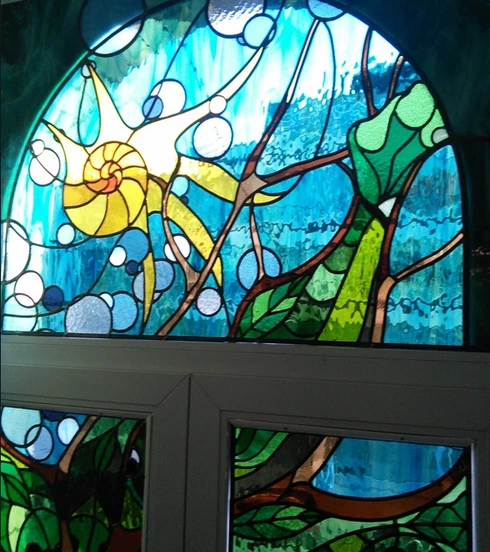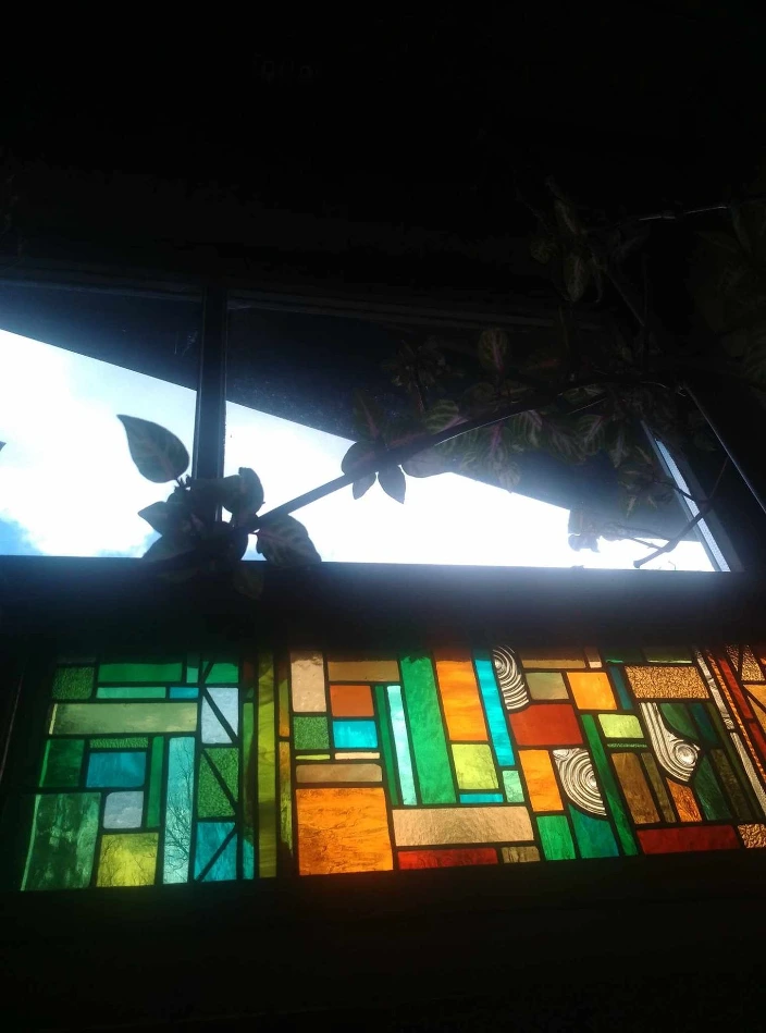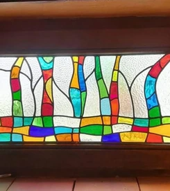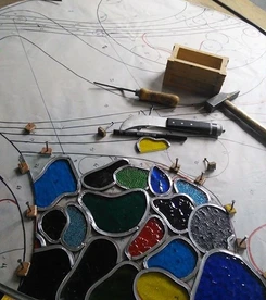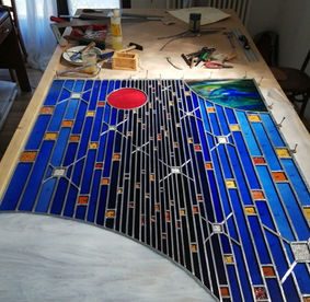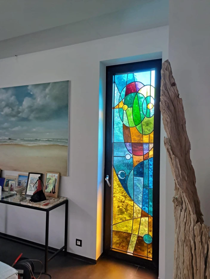 Je travaille le vitrail comme on compose un poème silencieux, en équilibre entre le geste ancestral et l'élan contemporain. Chaque tableau de verres est une œuvre unique qui se fait l'écho de ma créativité en résonance avec le lieu où il sera amené à rayonner. Tout débute par l'observation et l'écoute, terreau pour l'intuition, l'émotion, qui animent la main qui pose les premiers traits d'une composition qui se révèle peu à peu. Puis vient le choix des verres avec leurs textures, leurs couleurs, leurs jeux subtils de transparence. Chaque morceau est choisi pour ce qu'il raconte à la lumière. La création prend alors un autre rythme, plus ancré, plus physique. Je découpe chaque pièce, à la main, munie de mon coupe verre. Je les ajuste, une à une, avec patience puis les assemble dans leur réseau de plombs dont chaque point d'intersection sera soudé à l'étain, avant de passer aux patines, au mastic et au nettoyage. Tout ce long processus de création suit un enchaînement précis, presque chorégraphié, où chaque étape porte en elle une part d'intention et de maîtrise. Ce sont des gestes anciens, issus d'une longue tradition, mais je les emploie au service d'une expression résolument contemporaine qui n'a d'autre intention que d'offrir une part de rêve en verres aux yeux épris de lumière. Verrière, brise vue, alcôve, porte vitrée agrémentée d'un tableau de verres, vitrail à suspendre ici ou là, lanterne, abat-jour, enseigne stylisée, puit de lumière entre deux pièces ou étages, le choix ne manque pas et quand il s'agit de s'offrir de la beauté vibrante et captivante, il y a t-il encore un choix sinon de se laisser aller à lui faire place?