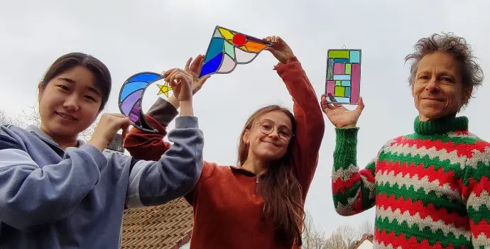 - Apprentissage progressif des techniques traditionnelles du vitrail (découpe, sertissage, soudure, finitions),